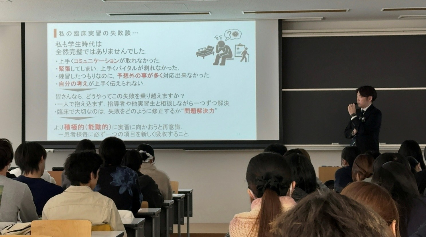 本研修会を通じて、学生たちは実習への不安を軽減するとともに、将来のキャリアイメージを具体的に描く機会を得ることができました。学生たちがこれからの臨床実習での貴重な経験を通して、大きく成長して帰ってきてくれることを期待しています。